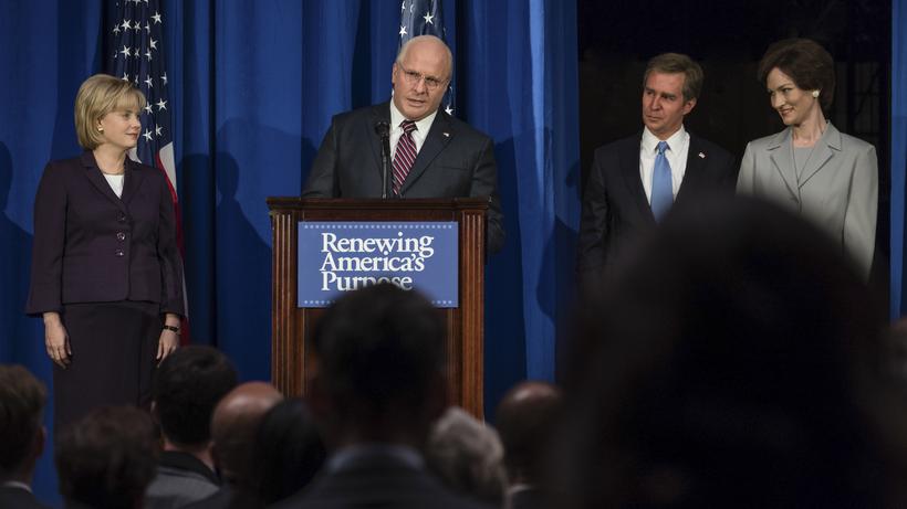 Zum Ende des Films bricht Bale als Cheney sogar die 4te Wand und wendet sich direkt an die Kamera und gibt von sich, dass er keine seiner Taten bereuen würde, denn er hätte alles für das amerikanische Volk gemacht, dass er zu beschützen geschworen hätte. Der Film-Zuschauer wird dabei nicht nur direkt angesprochen, es ist auch noch so überzeugend angebracht, dass man fast glauben könnte, Cheney hätte sein ganzes Lang wirklich aus dieser Überzeugung heraus gearbeitet. Auf der einen Seite natürlich ein Smarter Kniff um mit den Gefühlen seiner Zuschauer zu spielen. Aber auch hier wieder ein zweischneidiges Schwert, denn es wächst auch der Gedanke „Wollen die mir jetzt wirklich verkaufen, dass Cheney davon überzeugt wäre, das alles für andere gemacht zu haben, um damit 9/11 zu rächen? Wollen die mir Cheney jetzt auch noch als „den guten“ verkaufen?“ Will er natürlich nicht, man zweifelt auch nicht an Cheneys Absichten, sondern daran, ob der Film die richtigen Wege gewählt hat, um dem Zuschauer das zu vermitteln, was er vermitteln wollte.